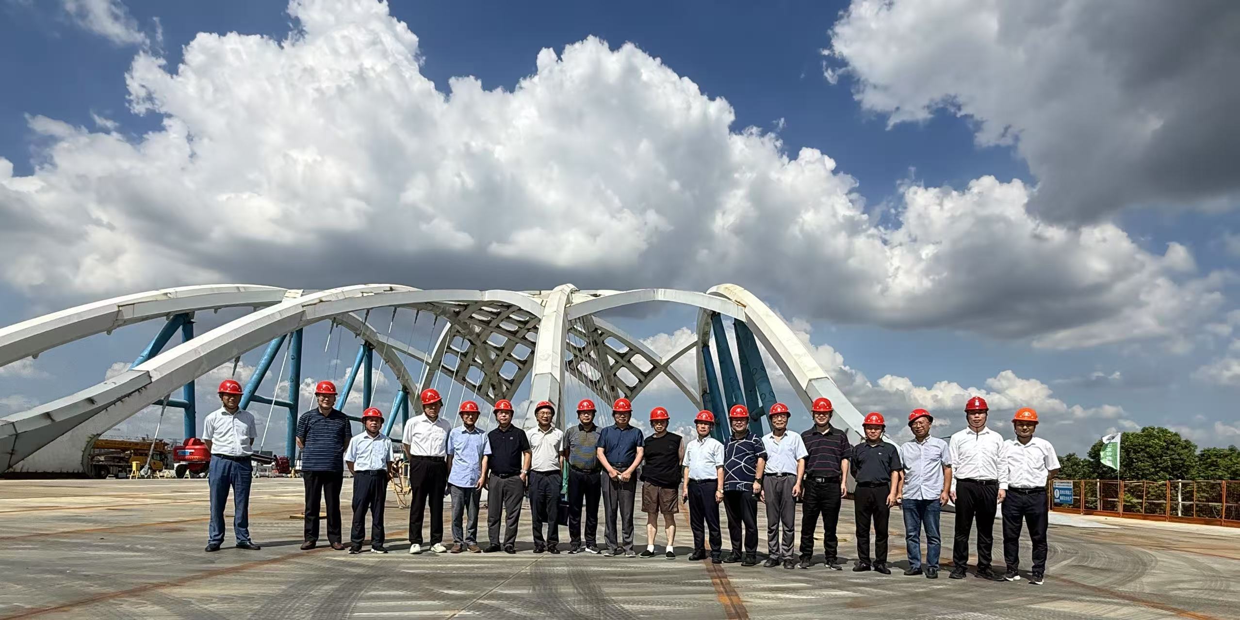 會(huì)后,與會(huì)專家觀摩了江蘇常鑫路橋集團(tuán)有限公司承建的中吳大道跨京杭運(yùn)河主橋。該橋采用鋼箱拱結(jié)構(gòu),橋?qū)?0米,跨度120米,總工程量約9200噸。作為城市景觀橋梁的代表,該橋建成后將成為常州城市建設(shè)新名片。