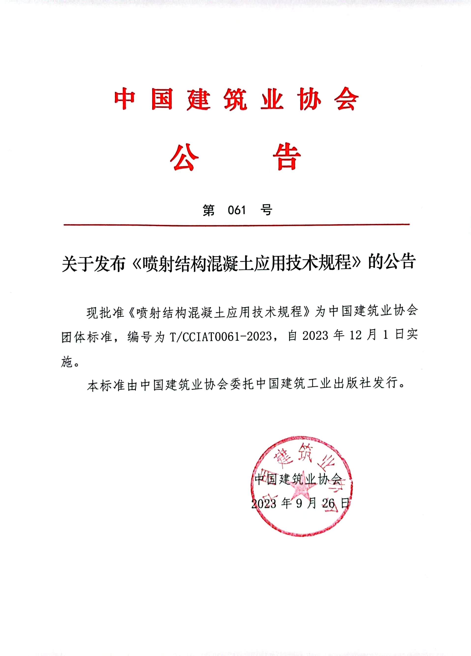 關(guān)于發(fā)布《噴射結(jié)構(gòu)混凝土應(yīng)用技術(shù)規(guī)程》的公告
