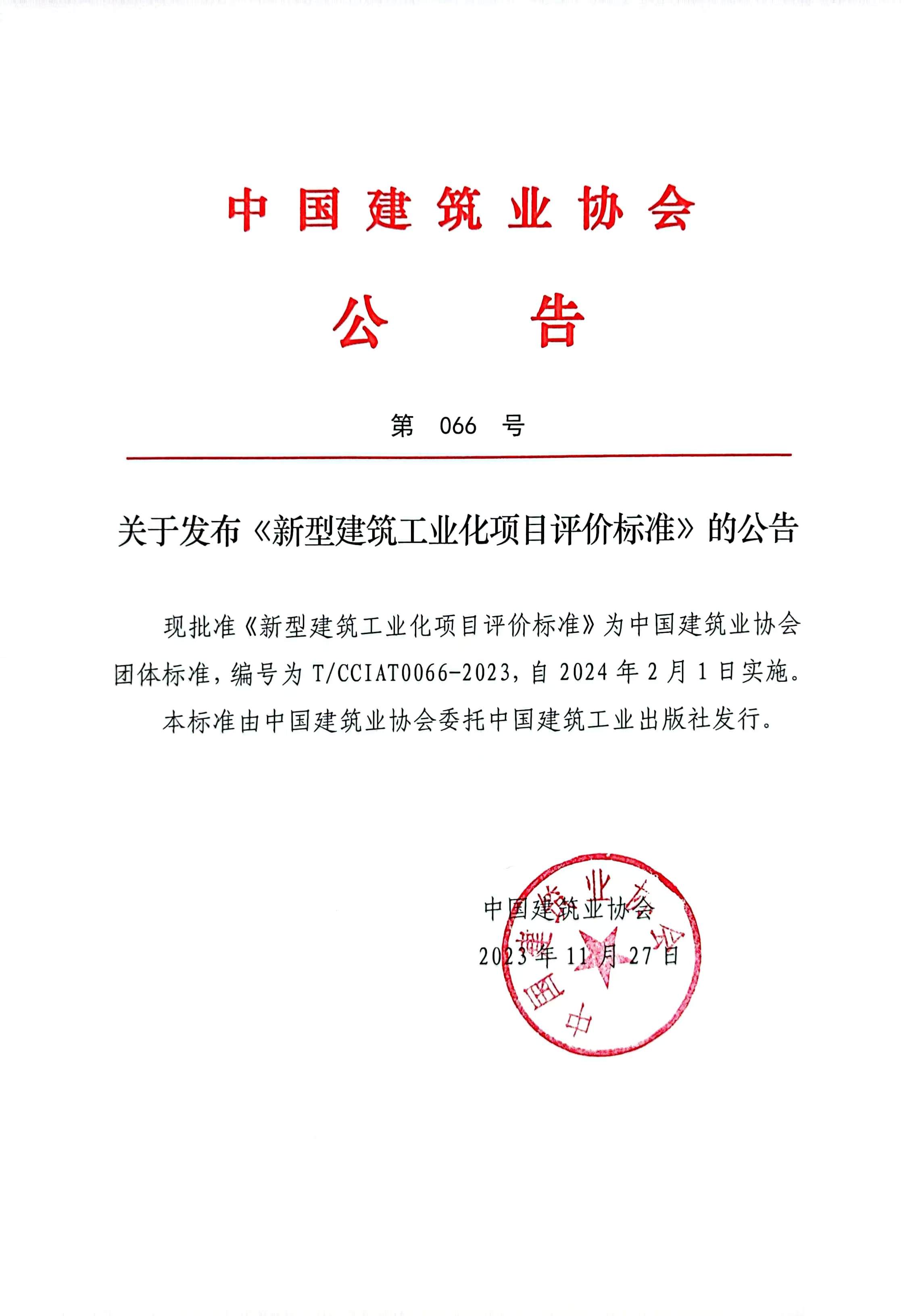 關于發布《新型建筑工業化項目評價標準》的公告