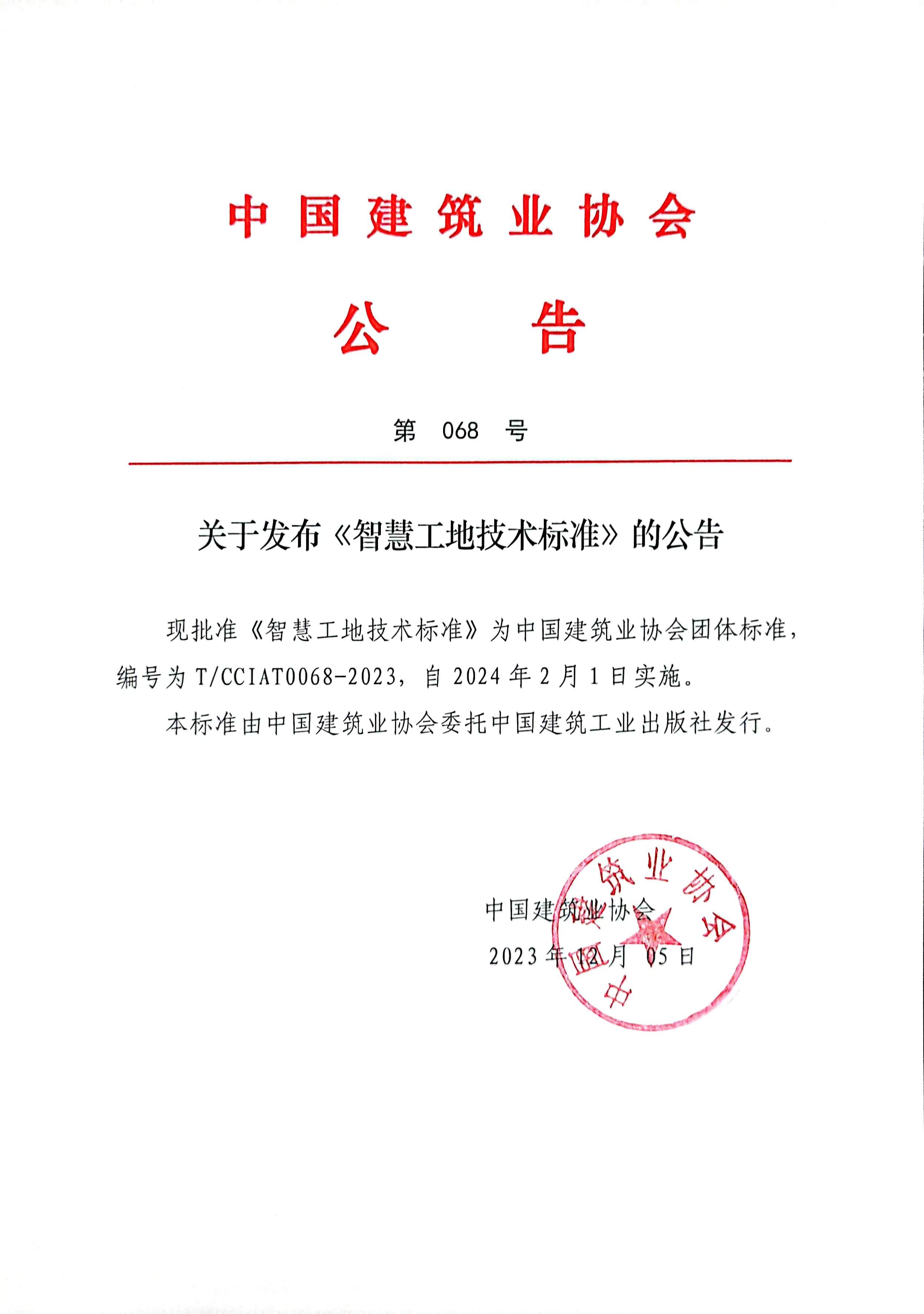 關(guān)于發(fā)布《智慧工地技術(shù)標(biāo)準(zhǔn)》的公告