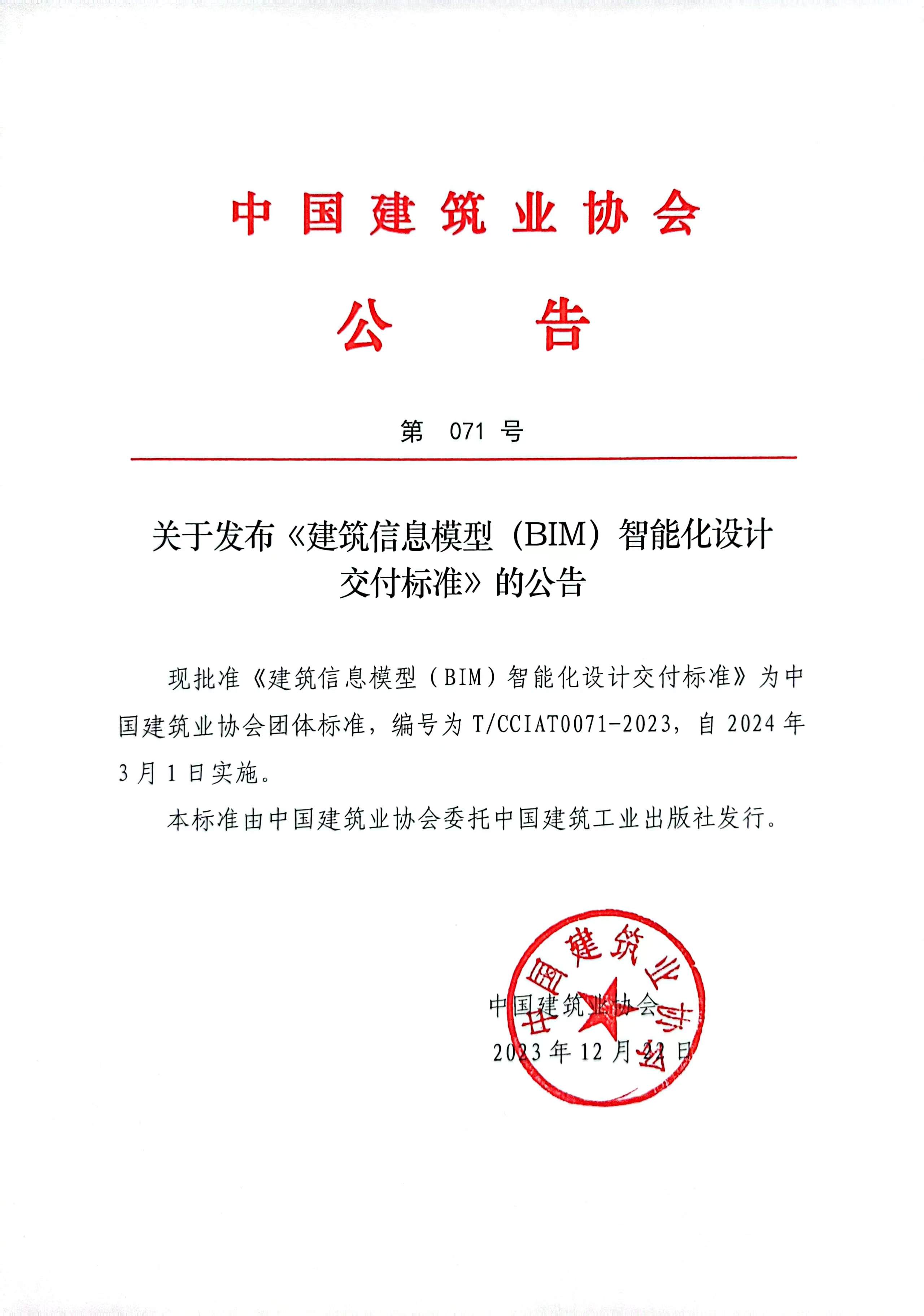 關(guān)于發(fā)布《建筑信息模型(BIM)智能化設(shè)計(jì)交付標(biāo)準(zhǔn)》的公告