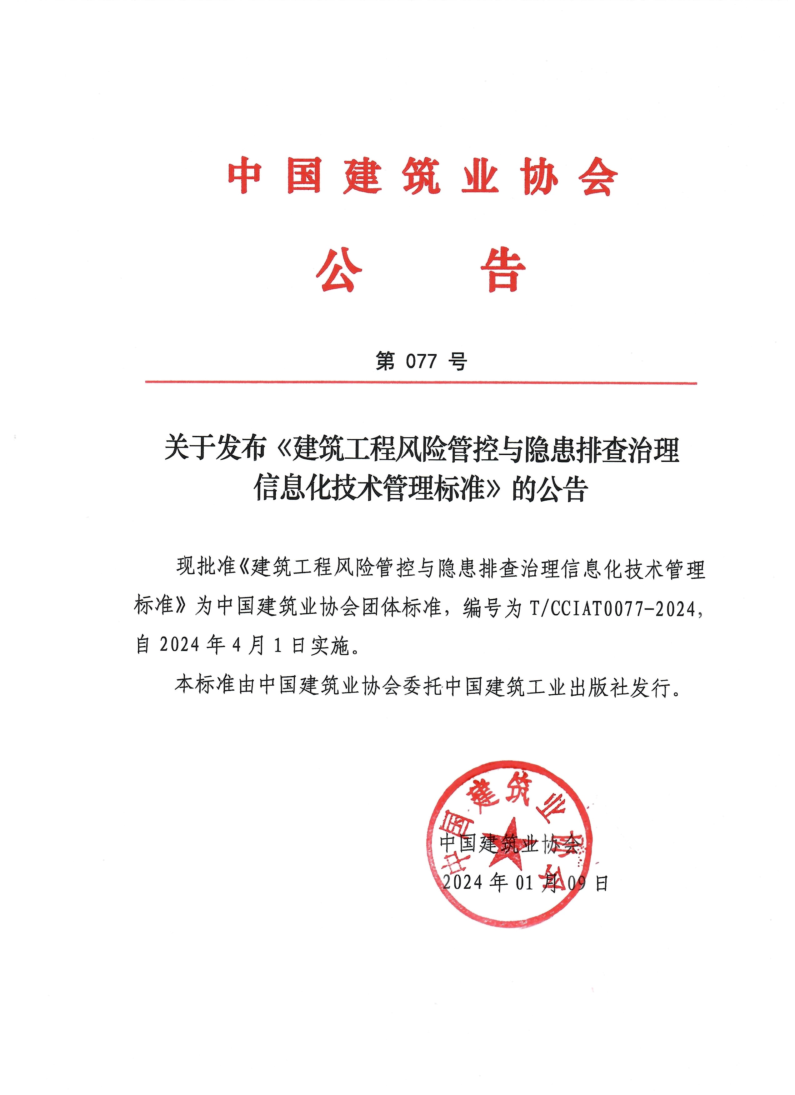 關于發布《建筑工程風險管控與隱患排查治理信息化技術管理標準》的公告