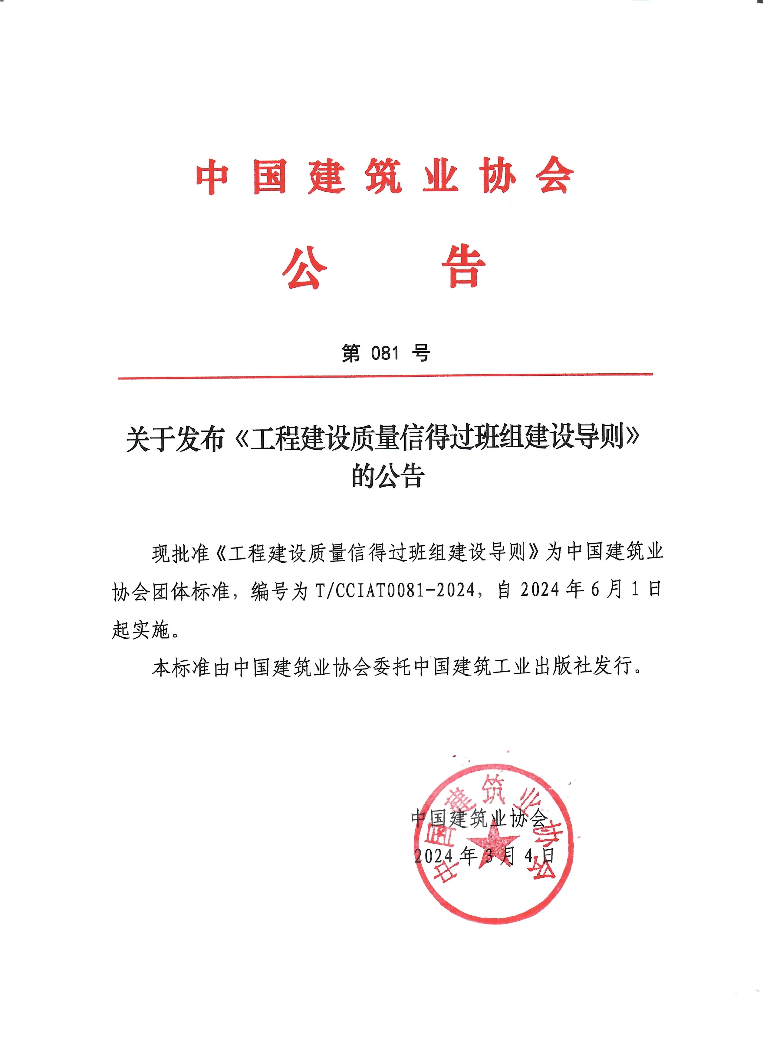 關于發布《工程建設質量信得過班組建設導則》的公告