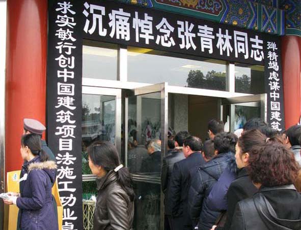 中國共產(chǎn)黨的優(yōu)秀黨員,中建總公司原黨組書記、副總經(jīng)理,中國建筑業(yè)協(xié)會工程項目管理委員會會長張青林同志遺體告別儀式于2010年2月26日上午十時在北京八寶山殯儀館舉行。全國政協(xié)副主席白立忱、國家有關(guān)部委的領(lǐng)導(dǎo)、行業(yè)協(xié)會代表、張青林同志的生前友好、社會各界有關(guān)人士近1000人參加了告別儀式。十屆全國人大環(huán)資委主任、中建協(xié)項目管理委員會名譽會長毛如柏,全國人大環(huán)資委主任汪光燾,國務(wù)院南水北調(diào)辦公室主任張基堯,住建部副部長郭允沖等領(lǐng)導(dǎo)前往送別。