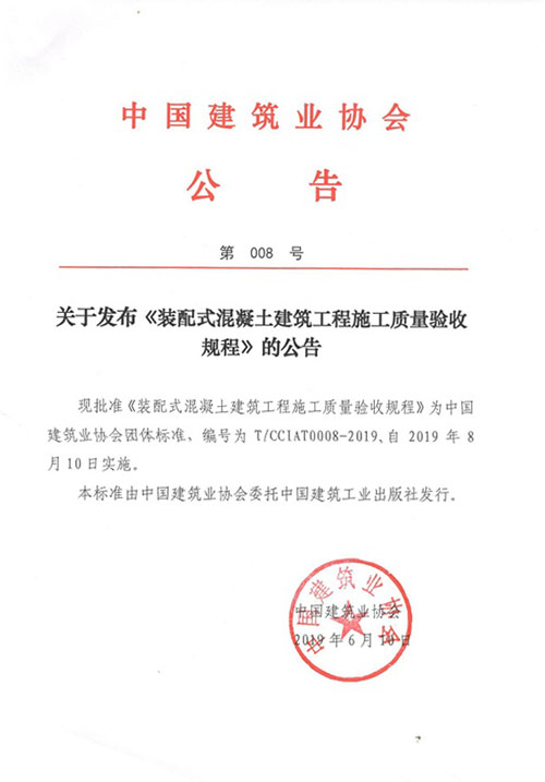 關于發布《裝配式混凝土建筑工程施工質量驗收規程》的公告