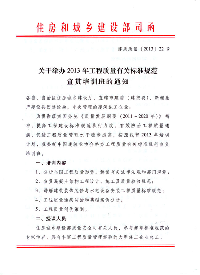 附件:關于舉辦2013年工程質量有關標準規范宣貫培訓班的通知