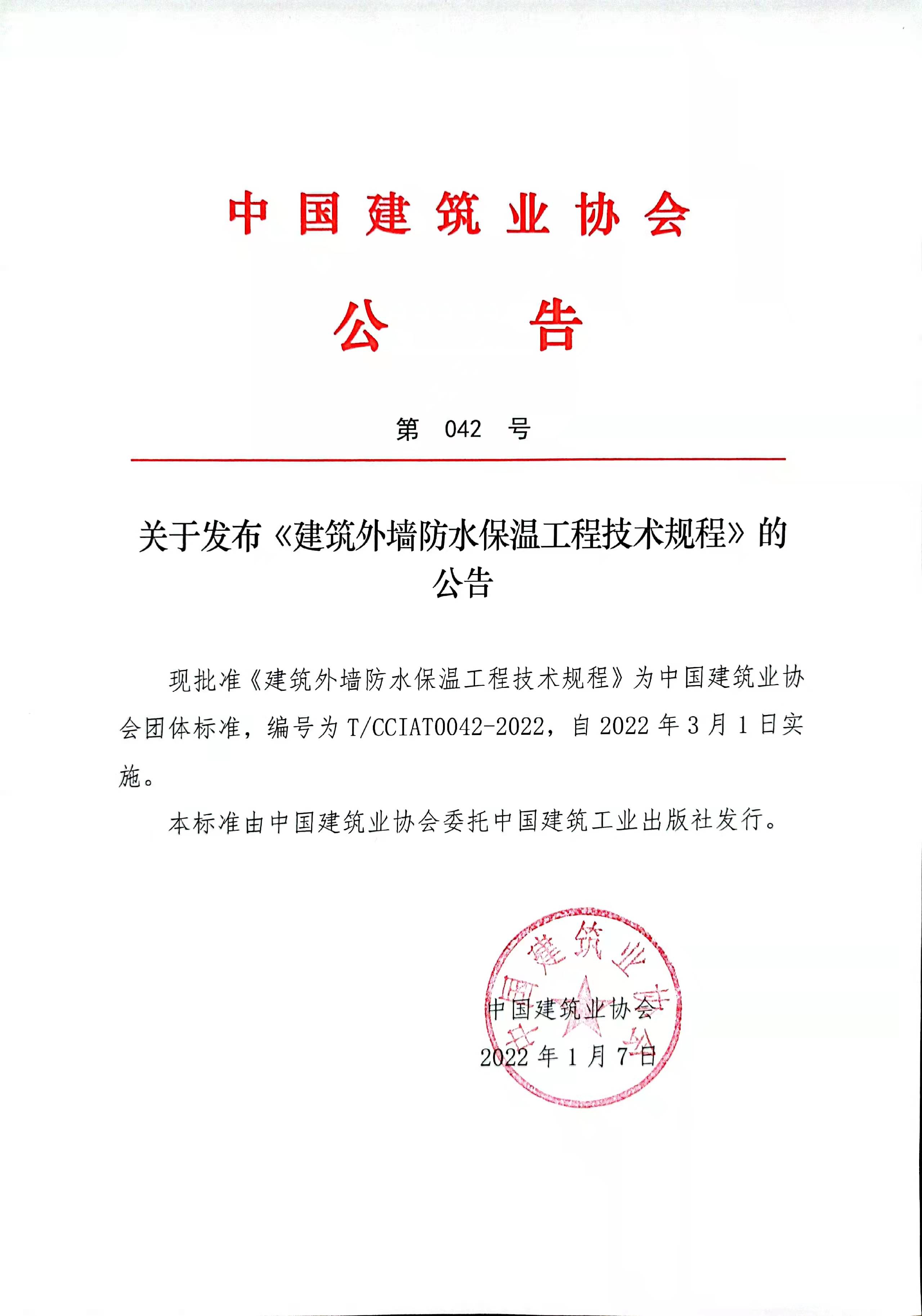 關于發布《建筑外墻防水保溫工程技術規程》的 公告