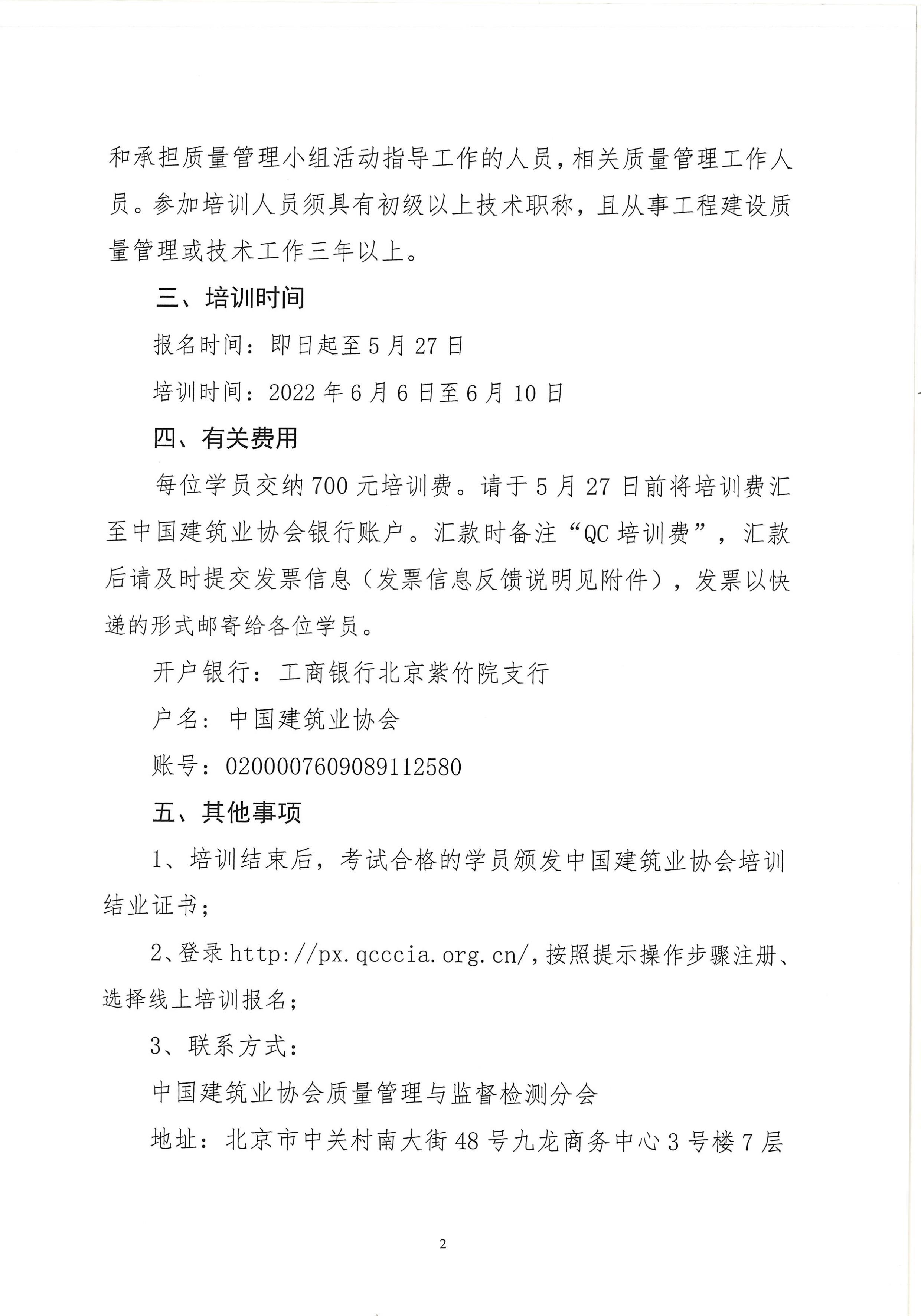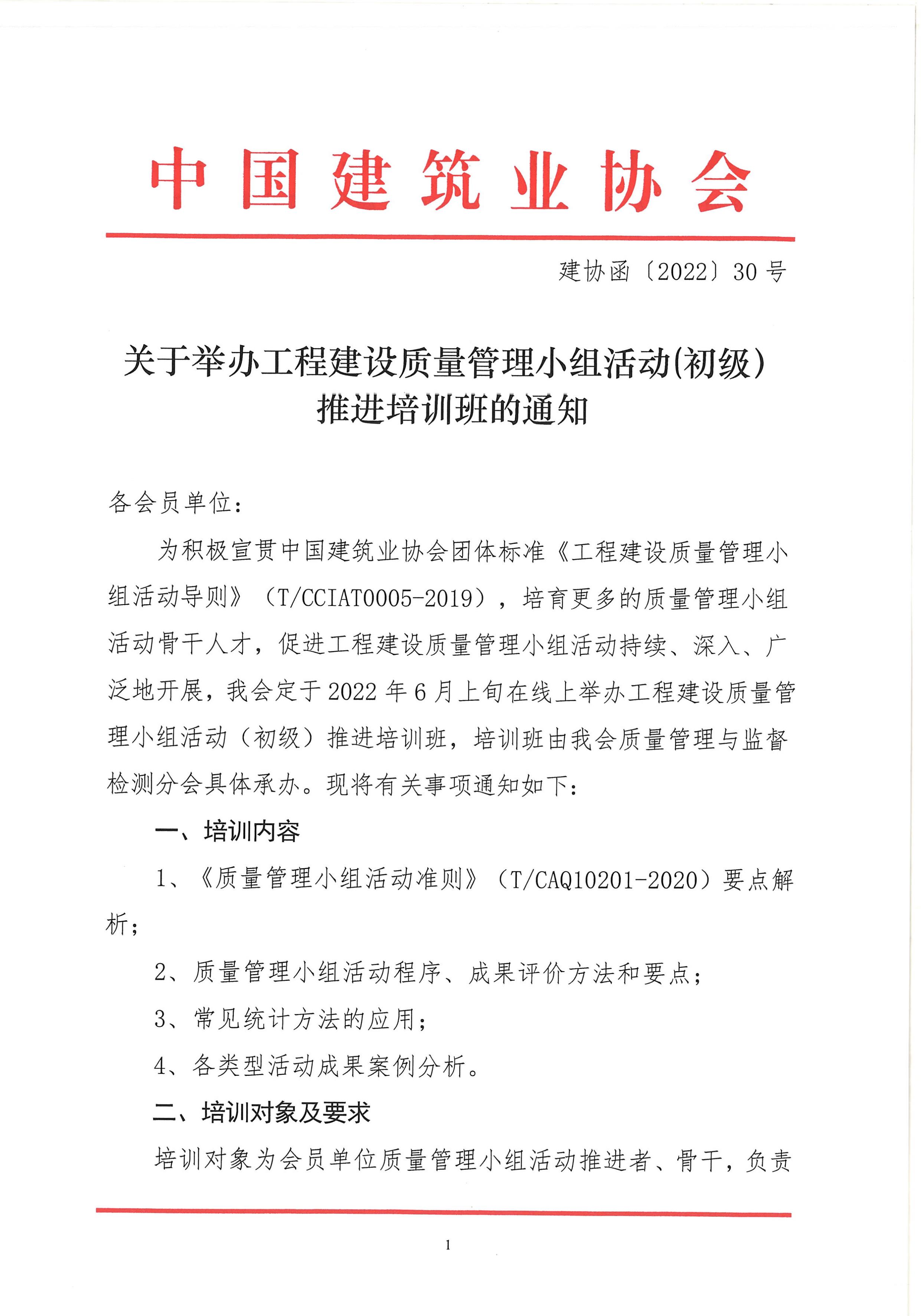 關于舉辦工程建設質量管理小組活動(初級)推進培訓班的通知