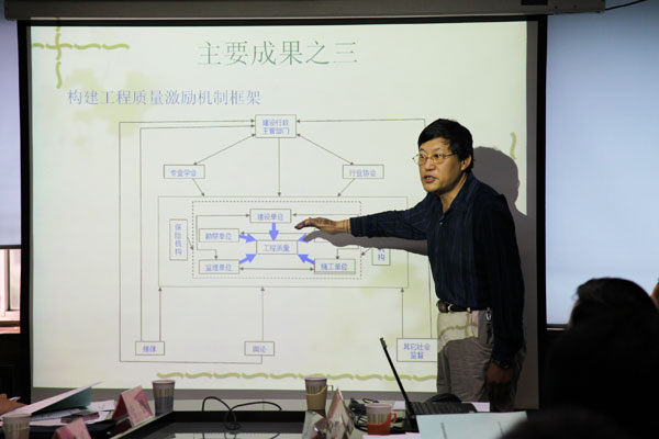 圖1:《提高工程質(zhì)量水平的激勵(lì)機(jī)制研究》課題報(bào)告評(píng)審會(huì)現(xiàn)場(chǎng)
