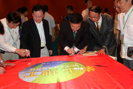 圖3:海峽兩岸代表在錦旗上簽字