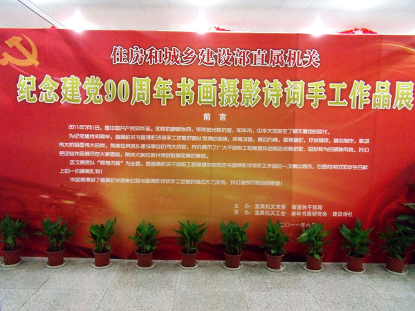 為慶祝中國(guó)共產(chǎn)黨90華誕,6月24日,住房城鄉(xiāng)建設(shè)部“輝煌歷程”書畫攝影詩(shī)詞手工作品展隆重開(kāi)展。部機(jī)關(guān)、直屬事業(yè)單位、部屬社團(tuán)和離退休老同志以飽滿的激情,揮毫潑墨,舞動(dòng)丹青,聚焦精彩,精心制作了幾百幅作品,描繪了祖國(guó)的大好河山,謳歌了黨的英明領(lǐng)導(dǎo),展示了建設(shè)戰(zhàn)線廣大職工銳意進(jìn)取、奮發(fā)有為的精神風(fēng)貌。
