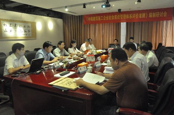 2012年9月11日,《中國建筑施工企業社會責任評價準則編制》研討會在京召開。聯合國工業發展組織駐華代表處、中國國際經濟技術交流中心、中國國家認證認可監督管理委員會認可監管部、中國社會科學研究院工業經濟研究所、中國十五冶建設集團和北京中建協認證中心等單位的專家、學者14人出席。中國建筑業協會周福民同志主持會議。