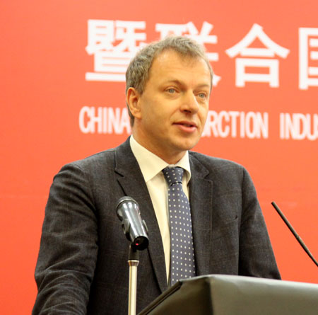 會上,中國建筑業協會副會長兼秘書長吳濤、聯合國工業發展組織清潔和可持續生產處處長熱內、商務部中國國際經濟技術交流中心副主任王偉黎、中國國家認證認可監督管理委員會認可監管部主任趙宗勃、中國建筑股份有限公司董事長易軍、中信建設有限責任公司總經理袁紹斌、中國鐵路工程建設協會秘書長解高潮分別代表項目的承辦和支持單位做大會致辭。新蒲建設集團有限公司總經理王麥對代表2013年度全國建筑業AAA級信用企業做了發言。