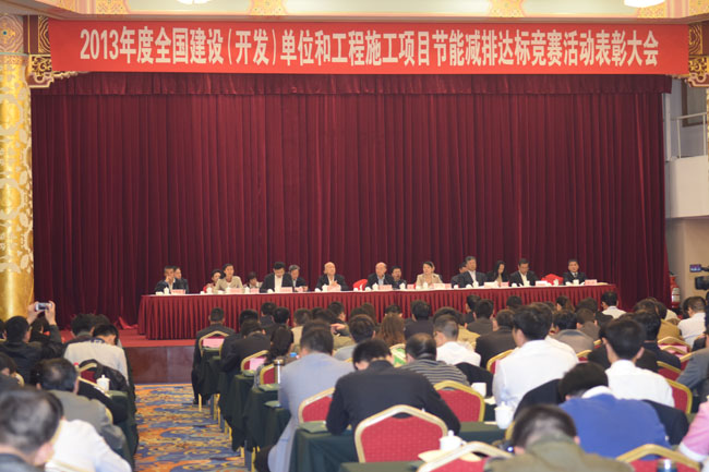 2014年4月14日,中國建筑業(yè)協(xié)會和中國海員建設(shè)工會全國委員會在北京隆重召開2013年度全國建設(shè)(開發(fā))單位和工程施工項目節(jié)能減排達(dá)標(biāo)競賽活動表彰大會。中國建筑業(yè)協(xié)會副會長徐義屏、副會長兼秘書長吳濤、中國海員建設(shè)工會全國委員會建筑工作部部長耿群、中國建筑業(yè)協(xié)會副秘書長劉宇林、中國建筑業(yè)協(xié)會綠色施工分會會長王祥明、中國建筑業(yè)協(xié)會綠色施工分會副會長、中國工程院院士肖緒文等領(lǐng)導(dǎo)出席會議。參會代表300余人。