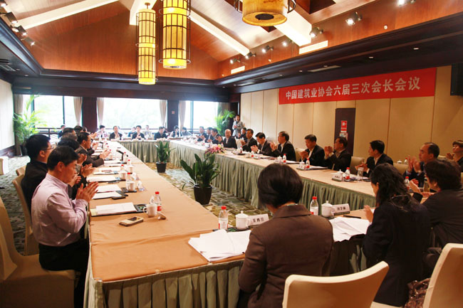 11月18日,中國建筑業協會在杭州召開六屆三次會長會議。中國建筑業協會會長王鐵宏主持會議,吳濤、尤京、王祥明、孫波、莊尚標、劉耀華、李平、李立勇、李寶元、楊鏡璞、吳建軍、張起翔、陳世華、林秋美、金寧運、耿裕華、笪鴻鵠、韓平、雷毅、樓永良等20位副會長出席會議,副秘書長李蓬、景萬、劉宇林、趙峰、王秀蘭列席會議。