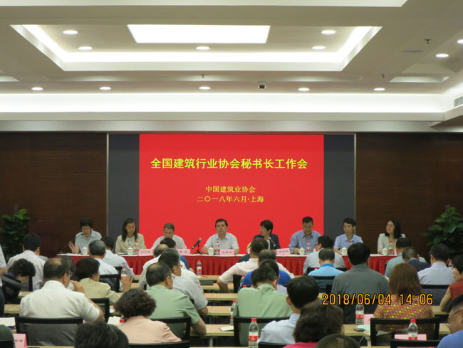 2018年6月4日,中國建筑業(yè)協(xié)會在上海召開全國建筑行業(yè)協(xié)會秘書長工作會。中國建筑業(yè)協(xié)會會長王鐵宏、副會長吳慧娟出席會議并講話,各地區(qū)建筑業(yè)協(xié)會和有關(guān)行業(yè)建設(shè)協(xié)會會長及秘書長約80人出席。副秘書長李蓬主持會議并宣讀了《關(guān)于加強(qiáng)協(xié)會分支機(jī)構(gòu)管理的說明》。副秘書長景萬宣讀了《關(guān)于完善魯班獎評選工作的說明》。