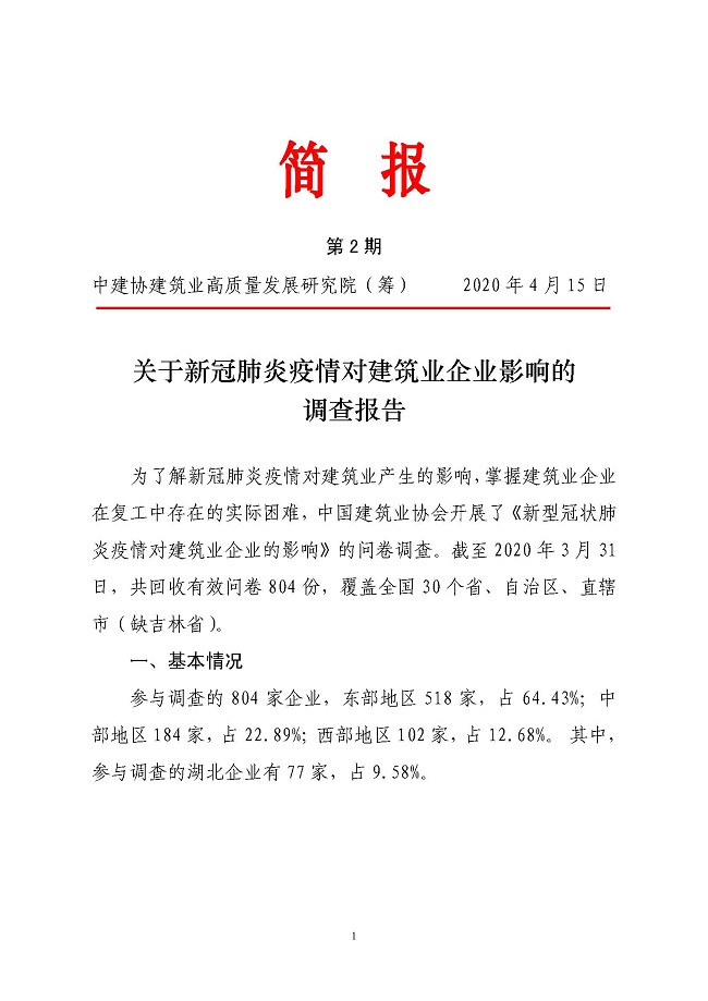 關于新冠肺炎疫情對建筑業企業影響的調查報告(中英文)