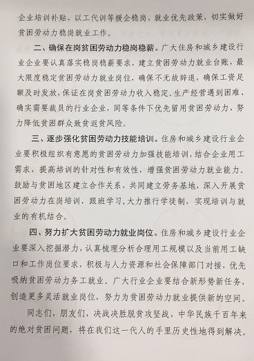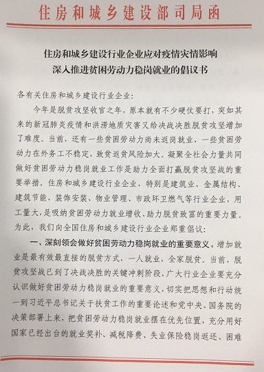 住房和城鄉建設行業應對疫情災情影響深入推進貧困勞動力穩崗就業的倡議書