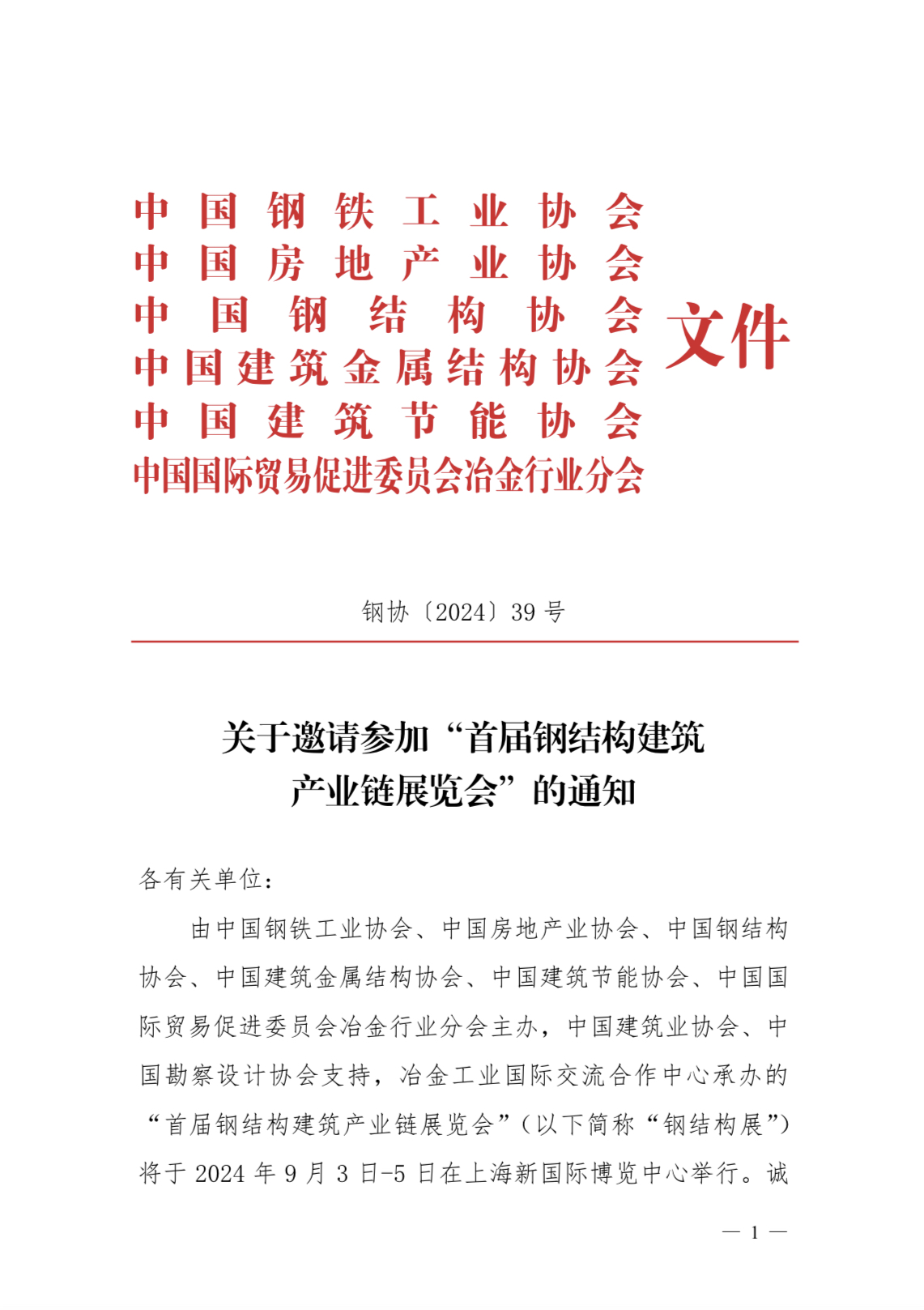 關于邀請參加“首屆鋼結構建筑產業鏈展覽會”的通知