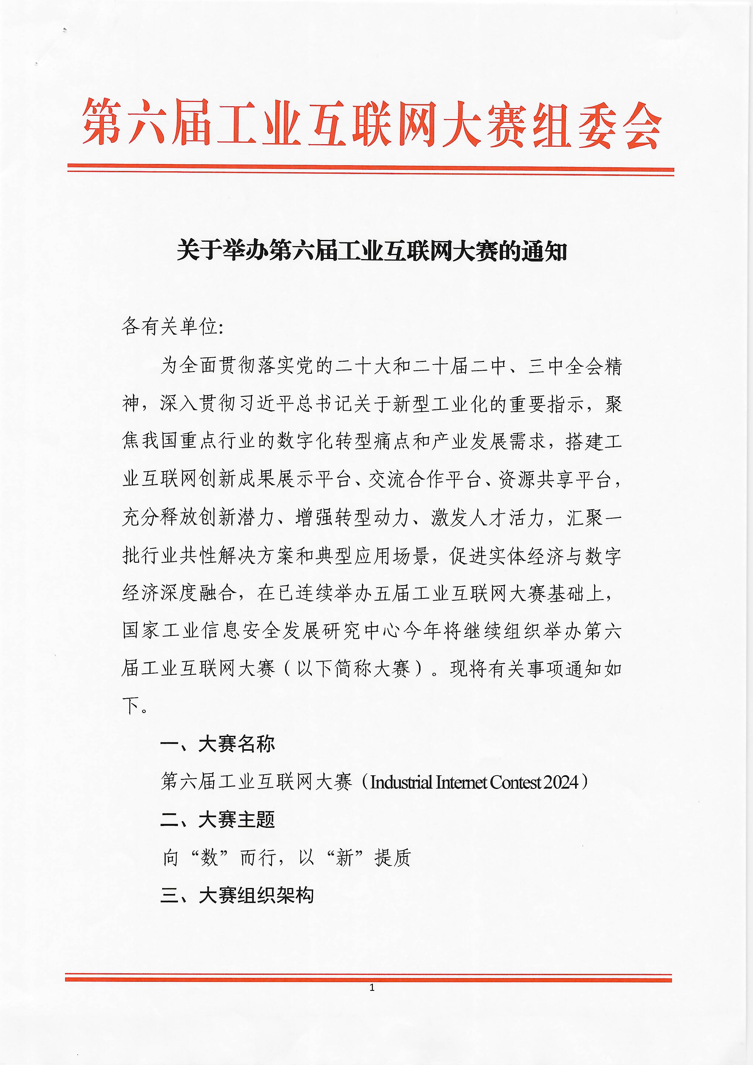 關于舉辦第六屆工業互聯網大賽的通知