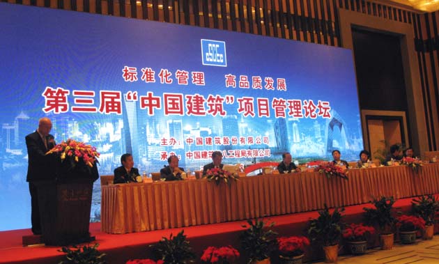 由中國(guó)建筑股份有限公司組織的第三屆“中國(guó)建筑”項(xiàng)目管理論壇于2012年4月17日至18日在南京市舉辦。中建總公司董事長(zhǎng)易軍,南京市副市長(zhǎng)陸冰,江蘇省建設(shè)廳副廳長(zhǎng)徐學(xué)軍,中國(guó)建筑業(yè)協(xié)會(huì)副會(huì)長(zhǎng)兼秘書(shū)長(zhǎng)吳濤,中國(guó)對(duì)外工程承包商會(huì)副會(huì)長(zhǎng)王禾等領(lǐng)導(dǎo)同志出席論壇。來(lái)自中建成員企業(yè)的170名代表參加會(huì)議。