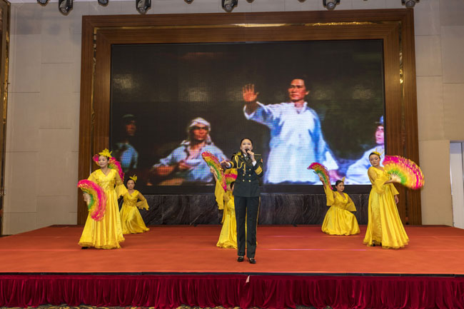 本次活動還通過背誦毛主席語錄、朗誦毛主席詩詞、唱紅歌、毛體書法展示等多種形式再現(xiàn)了主席的領(lǐng)袖風(fēng)采。中國工程院肖緒文院士現(xiàn)場為大家做了精彩的即興分享,中國建筑工程總公司毛志兵總工、中南控股集團(tuán)魯貴卿總裁、南京大地建設(shè)集團(tuán)劉亞非總工先后吟誦主席經(jīng)典詩詞《七律•長征》、《沁園春•長沙》、《七律•人民解放軍占領(lǐng)南京》,他們飽含深情、富有激情,把對主席的思念和敬仰之情表達(dá)得淋漓盡致。我省建筑企業(yè)自排自演的《太陽最紅、毛主席最親》、《三大紀(jì)律、八項注意》、以及有地方特色的豫劇版《沁園春•雪》,都引起現(xiàn)場嘉賓對毛主席的無限念想。
