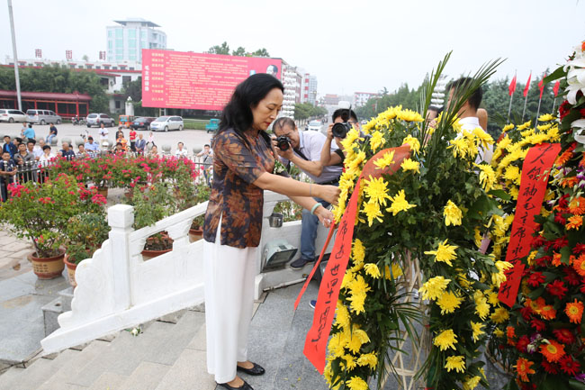 河南省建筑業(yè)協(xié)會常務(wù)副會長兼秘書長李娟向主席雕像敬獻(xiàn)花籃