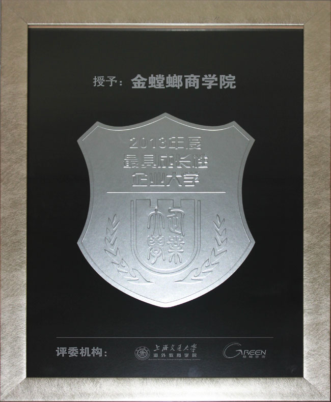 本次評選由“上海交通大學海外教育學院”發起,聯同國內20余家知名培訓媒體機構共同舉辦。金螳螂商學院獲評“2013中國最具成長性企業大學”,是對金螳螂集團踐行“學習型組織”并以人才培養來不斷推動企業高速持續發展的認可和鼓勵!
