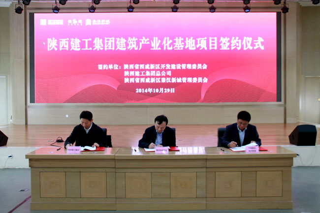 10月29日,隨著陜西建工集團與西咸新區管委會、秦漢新城管委會三方協議在秦漢新城的共同簽訂,該集團總投資93億元的建筑產業化基地項目正式落戶西咸新區秦漢新城。該集團董事長、黨委書記劉耀華,西咸新區黨工委書記、管委會常務副主任王軍,秦漢新城管委會主任楊占文出席簽約儀式。參加簽約儀式的還有該集團總經理薛永武及張義光、張建斌、薛增建、韋賢忠等。