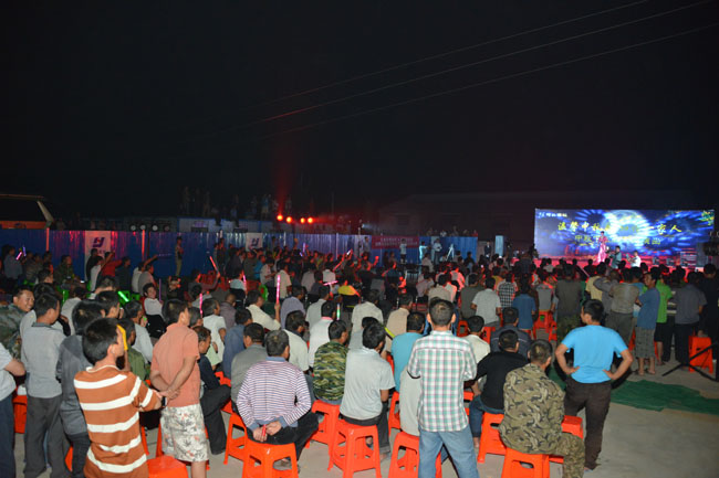 每逢佳節倍思親。9月24日晚,在河北建設集團建安分公司位于廊坊固安的華夏如園盛園項目部工地上,歡快的歌聲、婆娑的舞姿與歡聲笑語交映成趣,成了一片歡樂的海洋。中秋佳節到來之際,由河北建設集團有限公司、集團黨委、集團工會聯合主辦的“溫馨中秋夜•和諧一家人”中秋下基層慰問演出正在這里隆重上演,讓現場200余名農民工和一線員工在異鄉感受到了濃濃的溫情。