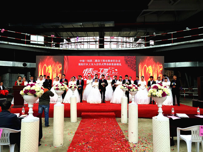 情定工地,“襄”愛一生。11月10日,中建三局二公司在襄陽科技館工地舉辦工友入會儀式暨金秋集體婚禮。