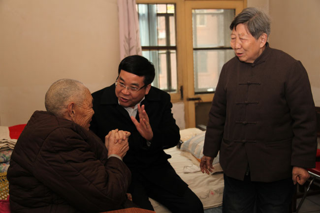 隨后,楊冠軍來到了位于西安市南二環的陜建八建集團白廟馨苑家屬院,先后慰問了80歲的退休困難職工慕樹斌、67歲的退休職工糜廣福。在慕樹斌家,得知老人因病做手術花費較大造成家庭比較困難,楊冠軍詳細詢問了老人現在身體回復狀況,家里生活情況,他安慰老人保持積極向上的心態,代表省住建廳向慕老及家人拜了個早年。來到糜廣福家,楊冠軍與他促膝交談,詢問了他以前在單位從事什么工種,現在身體情況和家庭情況,勉勵他保持健康的心態,安享晚年美好生活,代表省住房城鄉建設廳向老人送去了新春慰問金和祝福。