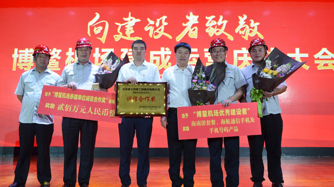 3月28日,海航集團(tuán)在新海航大廈三樓會(huì)議室舉行了博鰲機(jī)場(chǎng)建成運(yùn)營慶功大會(huì),海南省委常委、常務(wù)副省長毛超峰,瓊海市委副書記、市長寧虹雯,海航集團(tuán)董事局主席陳峰、董事長王健到會(huì)慶祝,北京建工四建公司董事長孫振泉、海南分公司經(jīng)理劉磊受邀出席慶功會(huì),四建公司參加博鰲機(jī)場(chǎng)建設(shè)的項(xiàng)目部、專業(yè)分公司、勞務(wù)合作單位等受到表彰的代表參加會(huì)議。四建公司作為博鰲機(jī)場(chǎng)建設(shè)重要參建單位,在此次表彰大會(huì)上榮獲“優(yōu)秀建設(shè)者”、“優(yōu)秀管理團(tuán)隊(duì)獎(jiǎng)”、“博鰲機(jī)場(chǎng)參建單位誠信合作獎(jiǎng)”等多項(xiàng)殊榮。