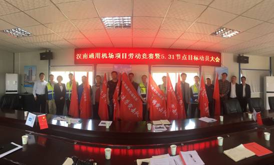 4月22日,中建三局二公司基礎公司在漢南通用機場項目部召開“創精品、樹形象大干40天”勞動競賽動員大會,項目部對重難點工程制定了詳實可行的施工計劃,將任務層層分解,明確責任,并簽訂節點工期獎懲責任書,全體動員搶抓節點工期。甲方、基礎公司領導及各分包單位代表60余人出席動員大會。