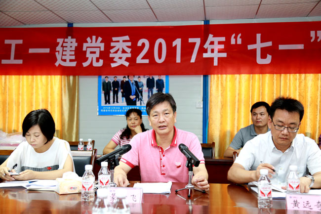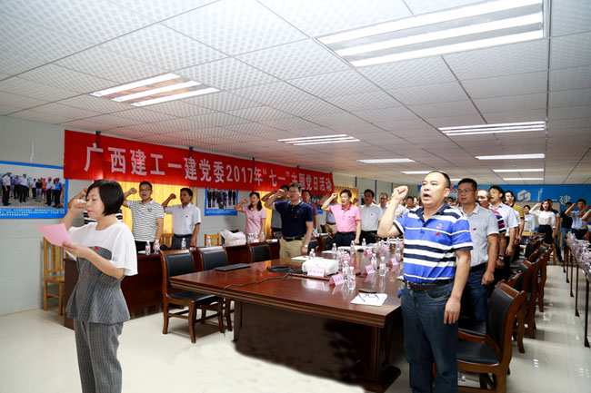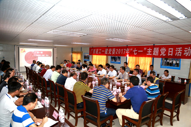 為了慶祝建黨96周年,扎實推進公司“兩學一做”學習教育常態化,進一步增強黨組織的凝聚力和戰斗力,激勵黨員堅定愛黨、信黨、跟黨走的理想信念。6月23日,廣西建工一建黨委在第一分公司承建的廣西安職院項目開展2017年“七一”主題黨日活動。活動上,公司黨委書記、董事長宣布廣西建工一建黨委“互聯網+”黨建平臺正式啟用,并為全體黨員上黨課;公司2016年先進基層黨組織作經驗交流發言。