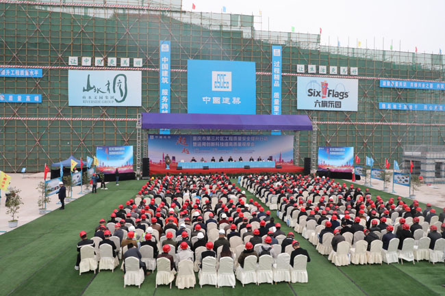 12月5日,中國建筑第二工程局有限公司西南分公司重慶山水度假區項目舉辦重慶市第三片區工程質量安全提升行動暨運用創新科技提高質量觀摩會,重慶市建設工程質量監督總站站長鄒云華、重慶市城鄉建設委員會建管處副處長艾云、璧山區城鄉建設委員會黨委書記、主任張玉平,中建二局西南分公司董事長丁威、副總經理鄧林峰等參加此次觀摩會,重慶市建筑行業共計400多人參加了此次活動。
