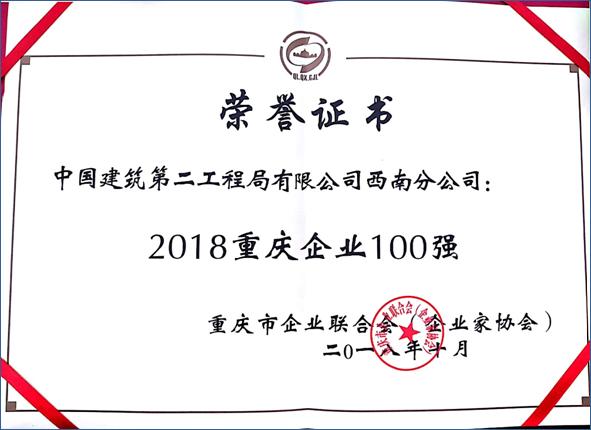 10月26日,重慶市企業(yè)聯(lián)合會發(fā)布了“2018重慶企業(yè)100強”、“2018重慶制造業(yè)企業(yè)100強”、“2018重慶服務(wù)業(yè)企業(yè)100強”排行榜。中國建筑第二工程局有限公司西南分公司以2017年度128億元的營業(yè)收入躋身榜單第37名。