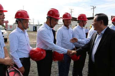 在項目部會議室舉行的座談會上,萬鋼副主席充分肯定了項目施工質量以及安全生產施工舉措,高度贊揚了項目組前期各項工作取得的成績,希望援建項目組圍繞創“境外魯班獎”工程,精心組織、科學施工,展現中國建筑鐵軍的風采。同時,認真總結援外收獲和經驗,為我國援非工作做出新的貢獻。