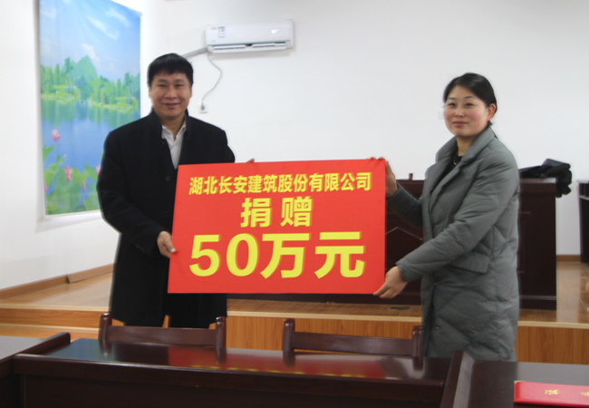 長安建設集團生于英山,長于英山,對英山人民的處境感同身受。始終將英山政府的關懷與幫助,牢記心頭。富而思源,回報桑梓,長安建設集團始終不忘自己的社會責任。過去,在家鄉“扶貧助學”、“關愛教育”、“三萬活動”、“對口幫扶貧困村”、“抗洪賑災”、“公共基礎設施建設”等等方面,總是站在責任企業的高度,力盡所能,積極參與。迄今,長安建設集團已累計捐款2000余萬元,給社會、單位、集體乃至個人提供幫助,送去關愛和溫暖。