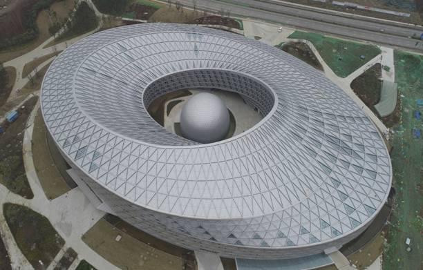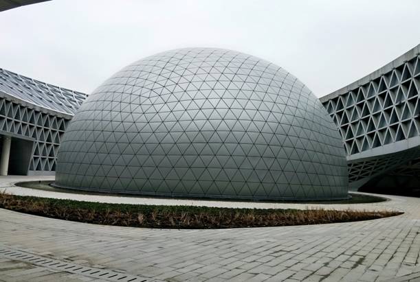 襄陽科技新館項目是襄陽市東津新區十大重點公共工程之一,總建筑面積約33800㎡,為襄陽市東津新區的標志性建筑。該該工程采用“探索之眼”創意,以天體軌道和星系為母體組成建筑整個部分,凸顯“啟迪智慧、創意探索”的建館理念,表達對科技的追求和對太空求知的探索,從空中俯瞰整個建筑,仿佛一只探索的眼睛望向天空。承載著600萬襄陽人民科技夢想的科技館新館,必將肩負起區域性科普展教中心的神圣使命,成為襄陽騰飛的科技新地標。