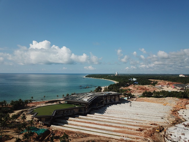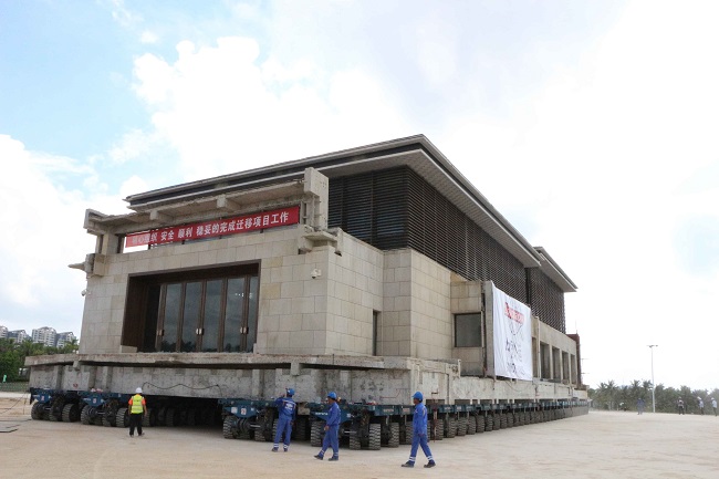 據悉,魯能山海天精品酒店、魯能山海天展銷中心面朝大海,,位于文昌市龍樓鎮紅海村委會,屬海南銅鼓嶺國家級自然保護區實驗區范圍內。根據文昌市委、市政府“雙暫停”(暫停建設、暫停營業)部署,守住生態紅線,酒店需要進行整改及完善相關手續。這么裝修高檔的建筑簡單一拆了之太可惜,重建又費時費力,能不能整體平移到新址?業主單位經過再三權衡,決定將這兩棟建筑進行技術平移幾百米‘落戶’,其中酒店建筑面積5000多平方米,重1.5萬多噸,需要平移730米;展銷中心建筑面積為6000多平方米,重2萬多噸,需要平移154米。