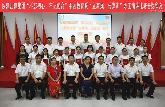 7月15日,陜建四建集團“不忘初心 牢記使命”主題教育暨“立家規、傳家訓”職工演講比賽在集團總部一樓會議廳舉行。