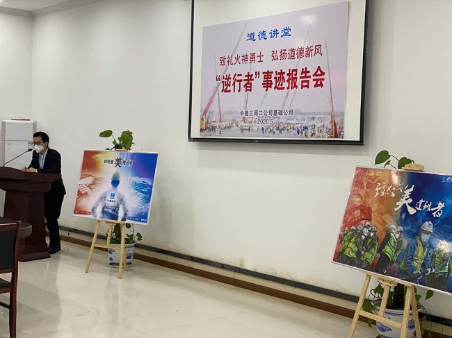 “陽光總有照射不到的地方,但我相信黑暗總會(huì)過去,黎明終究會(huì)到來......”這是基礎(chǔ)公司參加火神山醫(yī)院建設(shè)的一名職工給大家分享自己的參建經(jīng)歷和感受。5月7日,中建三局二公司基礎(chǔ)公司襄陽片區(qū)組織開展了“道德講堂•逆行者事跡報(bào)告會(huì)”暨復(fù)工復(fù)產(chǎn)集體宣誓活動(dòng),片區(qū)各項(xiàng)目40余名黨員和職工代表一起聆聽和感受5名“逆行”勇士的精彩分享。