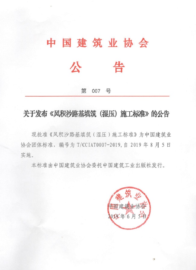 關(guān)于發(fā)布《風(fēng)積沙路基填筑(濕壓)施工標(biāo)準(zhǔn)》的公告