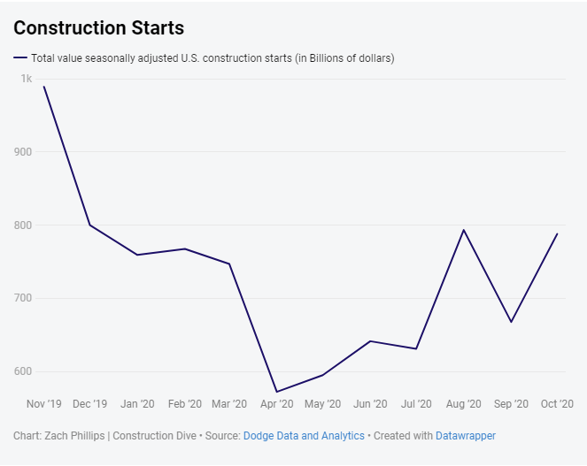 Projects are growing more complex every year, driving the values of new construction up. Dodge Data & Analytics measures the seasonally adjusted value of total U.S. construction starts each month, as well as the value of starts in nonresidential, residential and nonbuilding categories.