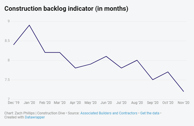 The ABC backlog indicator is forward-looking economic metric that reflects the amount of work under contract that will be performed by commercial and industrial construction contractors in the months ahead.