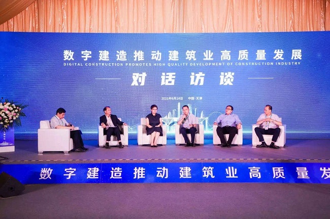 2021年6月24日,中國建筑科學大會暨綠色智慧建筑博覽會在國家會展中心(天津)勝利啟幕,作為本次大會專題論壇活動之一的“數字建造專題論壇”于當日下午在國家會展中心(天津)如期舉行。此次論壇是由中國建筑業協會專家委員會和天津市建筑業協會聯合承辦。論壇以“數字建造推動建筑業高質量發展”為主題,以主題報告、經驗分享、對話訪談和戰略合作簽約等環節呈現。中國建筑業協會副秘書長趙峰、天津市建筑業協會科技委主任委員胡德均到會致辭。中建協專家委員會常務副主任毛志兵、副主任韓振勇設計大師等多位副主任以及天津市建筑業協會副會長兼秘書長張薇到會指導。來自天津市以及全國各地的會員企業、協會代表約350人參加了此次論壇。論壇由中建協專家委員會秘書長李菲、中建協專家委員會副主任胡德均和李云貴分階段主持。